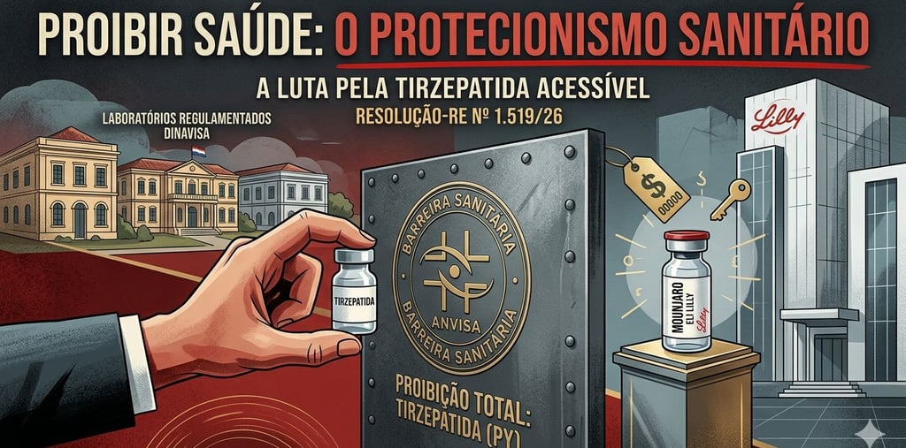 A Agência Nacional de Vigilância Sanitária (Anvisa) tem protagonizado, nos últimos meses, uma ofensiva regulatória com um alvo cirúrgico: impedir que o cidadão brasileiro acesse a tirzepatida produzida no Paraguai. O roteiro, que se iniciou com as Resoluções-RE nº 214/26 e nº 641/26, atingiu seu ápice com a recente Resolução-RE nº 1.519, de 13 de abril de 2026. Esta medida radicaliza o cerco ao proibir, de forma genérica, todas as marcas de tirzepatida fabricadas no Paraguai, sob o argumento onipresente da "ausência de registro".